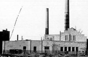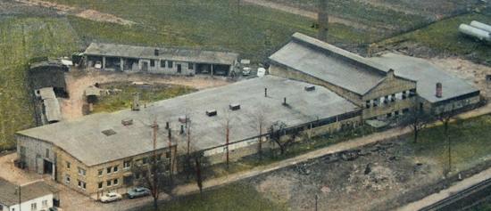 das damals brandneue und moderne Werksgebäude im "Im Woog" in nächster Nähe zum Bahndamm.