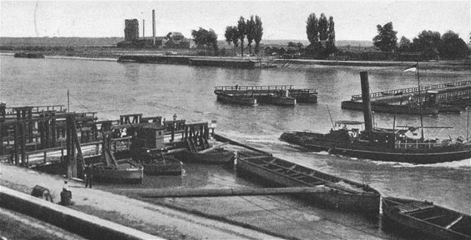 Brücke in den sicheren Hafen von Maximiliansau geschleppt, und der