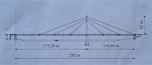 Über den 45 m hohen Pylon sind drei Schrägseilkabel (400 t)