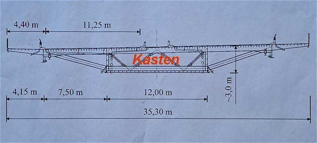 der 12 m breiten und 3 m hohen Brückenversteifung.